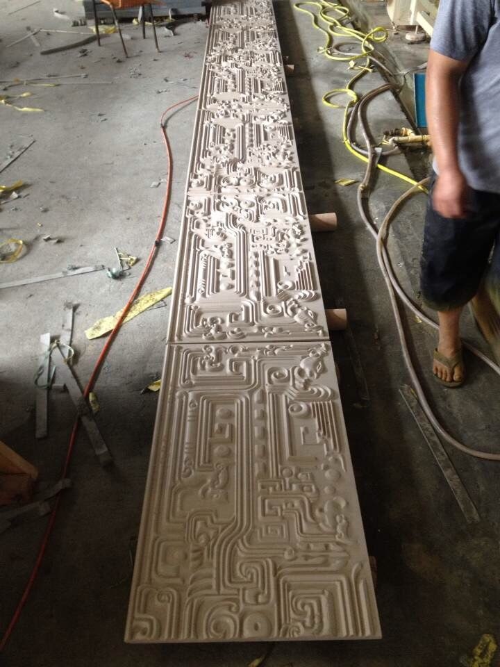 本公司位于石材之鄉(xiāng)一南安水頭。集自動噴砂(防荔枝面)數(shù)控雕刻、手工雕刻、石材噴砂工藝、高壓水沖、電視背景、異形線條等加工。