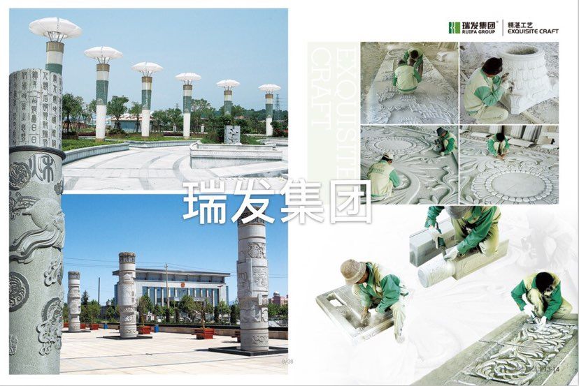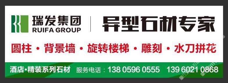 瑞發(fā)控股集團(tuán)地處閩南金三角,全國(guó)的石材生產(chǎn)基地-南安水頭,經(jīng)過多年不斷的創(chuàng)新,已發(fā)展成為一家集石材開采銷售,生產(chǎn)加工,進(jìn)出口貿(mào)易。建筑幕墻裝飾、房地產(chǎn)等多領(lǐng)域產(chǎn)業(yè)于一體的多元化,綜合型企業(yè)。 瑞發(fā)集團(tuán)旗下有福建省南安市瑞剛石材有限公司、福建瑞發(fā)投資有限公司福建瑞發(fā)幕地有限公司,福建瑞發(fā)傳媒有限公司,福建瑞發(fā)農(nóng)業(yè)有公司,并在全國(guó)各省市及歐美、巴西、印度、土耳其、造大利等石材原產(chǎn)地設(shè)立分公司及辦事處 瑞發(fā)集團(tuán)公司成立于1992年,秉承立信為本,品質(zhì)為先,顧客至上~的經(jīng)營(yíng)理念,以良好的信譽(yù),完善的服務(wù),優(yōu)質(zhì)的產(chǎn)品贏得了廣大客戶及社會(huì)各屆的一致好評(píng) 瑞發(fā)集團(tuán)在致力于開發(fā)新產(chǎn)品的同時(shí),也未松懈對(duì)品質(zhì)的高要求,公司以“顧客滿意”為核心,注重“內(nèi)煉素質(zhì),外樹形象”,已全面通過ISO90012008國(guó)際 質(zhì)量管理體系認(rèn)證和 ISO14001 2004 環(huán)境管理體系認(rèn)證:嚴(yán)格按照國(guó)標(biāo) GB/T18601-2001 執(zhí)行產(chǎn)品檢驗(yàn),公司連續(xù)多年被評(píng)為“守合同,重信用”。 AAA信用企業(yè) “納稅大戶”,“明星企業(yè)”?!案=ㄉ虡?biāo)"等榮譽(yù)稱號(hào) 公司注重企業(yè)的形象建設(shè),已全面導(dǎo)入CIS戰(zhàn)略及網(wǎng)絡(luò)的建立,為實(shí)現(xiàn)企業(yè)的高層次、國(guó)際化,規(guī)模化的發(fā)展,邁出了堅(jiān)定的步伐, 質(zhì)量,服務(wù)完關(guān)”是我們的宗旨,為您提供完善的服務(wù)及質(zhì)的產(chǎn)品是我們誠(chéng)摯的承諾! 主營(yíng):花崗巖、大理石、異型加工、圓柱、線條、背景墻、旋轉(zhuǎn)樓梯、雕刻、水刀拼花、酒店精裝系列石材。 主營(yíng):魚肚白、金花米黃、羅莎琳、隨州白麻、G664#、浪花白、空心圓柱、實(shí)心圓柱、線條、雕刻、水刀拼花、旋轉(zhuǎn)樓梯、石材幕墻