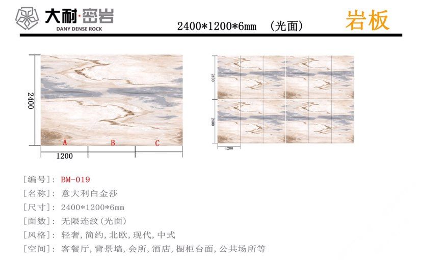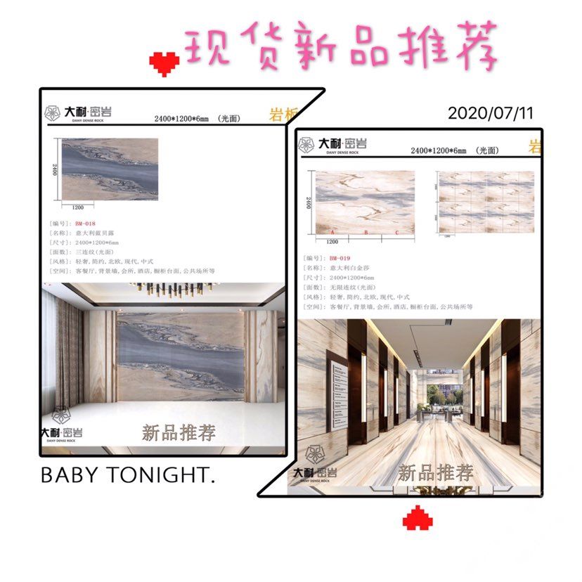 我們大耐密巖-巖板專場 新品種:巖板,硬度坑比石英石,亮度高,耐磨耐刮,防火防高溫,零滲透極耐污,超耐腐蝕,無毒無輻射。 有需要的可以聯(lián)系我或者到我們廠里品茶 和工作的指導,歡迎你的到來. 地址:云浮市云城區(qū)羅沙石通天下36卡,大耐密巖。