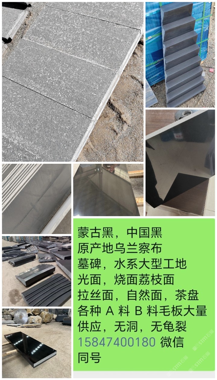 本公司位于烏蘭察布市,察哈爾右翼后旗,全國質(zhì)的蒙古黑,玄武巖,質(zhì)地堅硬,無孔洞,A叫做出口,墓碑,茶盤,不怕曬永不變色 B料可做火燒面,荔枝面,磨光面,各種工程。 本公司曾承接北京雁歸來環(huán)??萍加邢薰竟こ?/span>