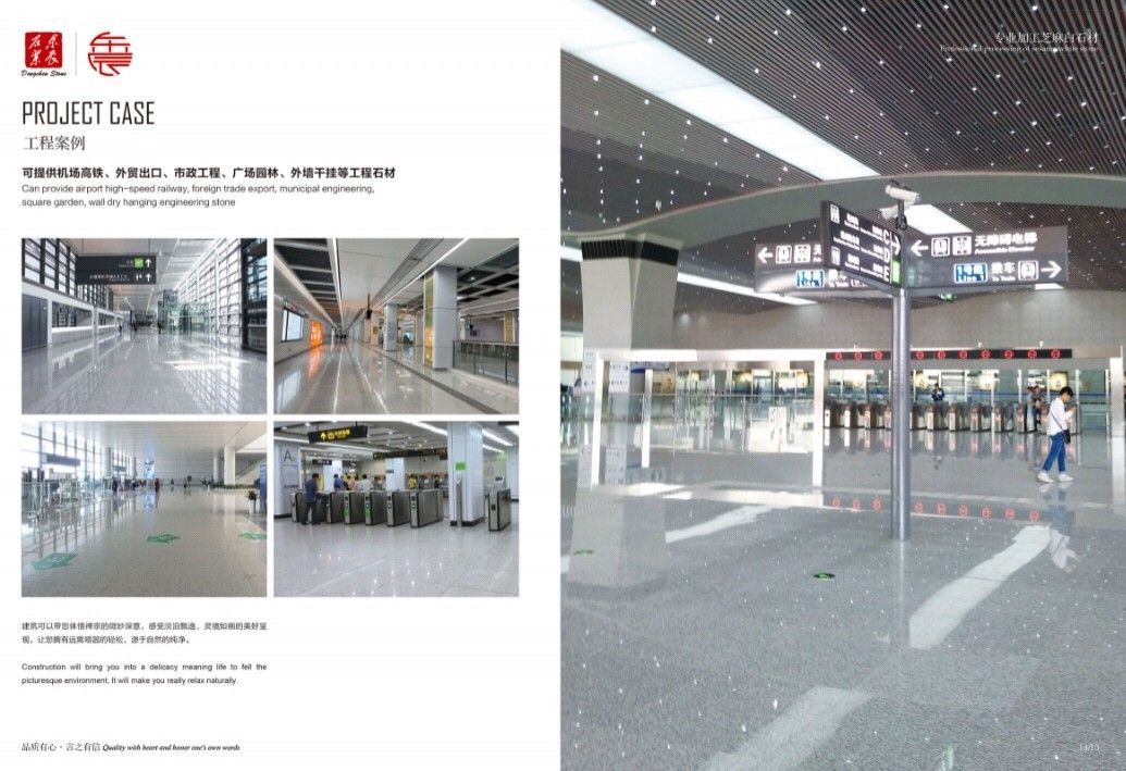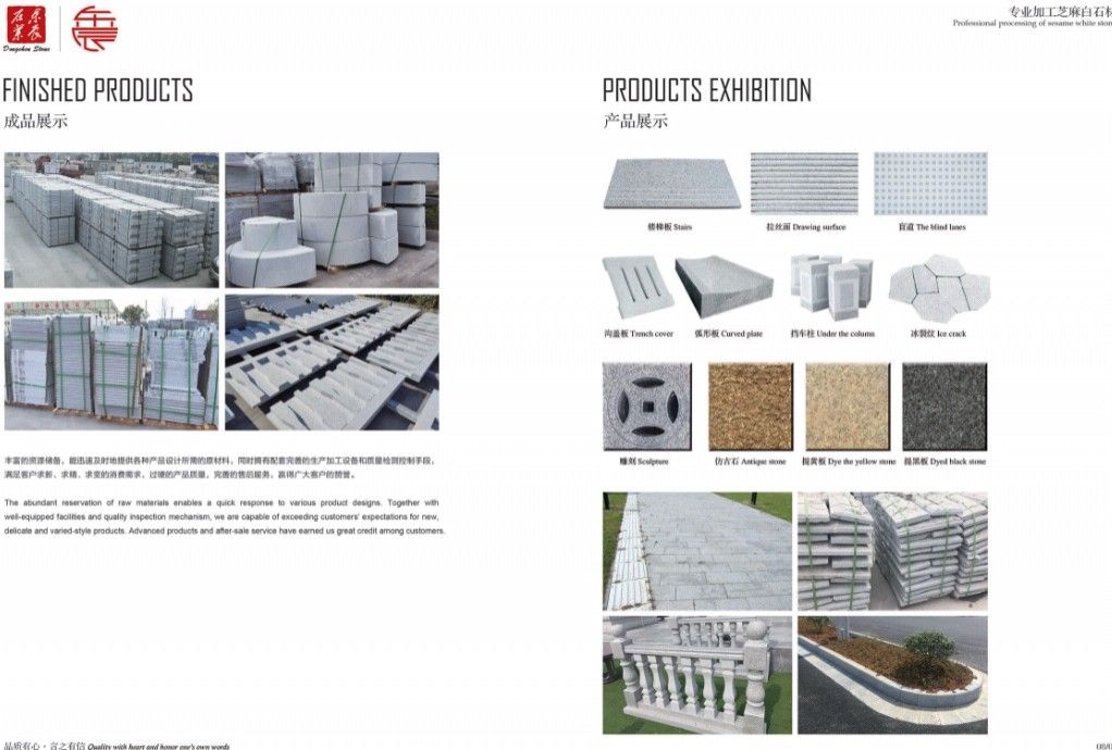 ?企業(yè)已認(rèn)證 主營(yíng):承接高鐵機(jī)場(chǎng)、外墻干掛、廣場(chǎng)別墅、市政工程和外貿(mào)出口等各種工程板。 主營(yíng)芝麻白G603、芙蓉白G602火燒面、光面、荔枝面、斧剁面、噴砂面、拉絲面、菠蘿面,水溝蓋板、雕刻板、路沿石、蘑菇石、擋車石、馬蹄石、冰裂紋、圓球、染色板等