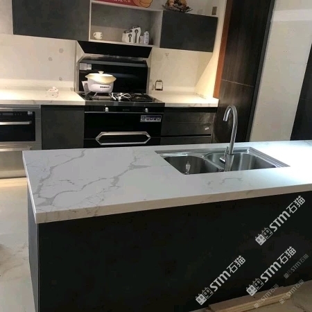 魚肚白.人造石英石廚房臺面工程案例.易揚石業(yè)