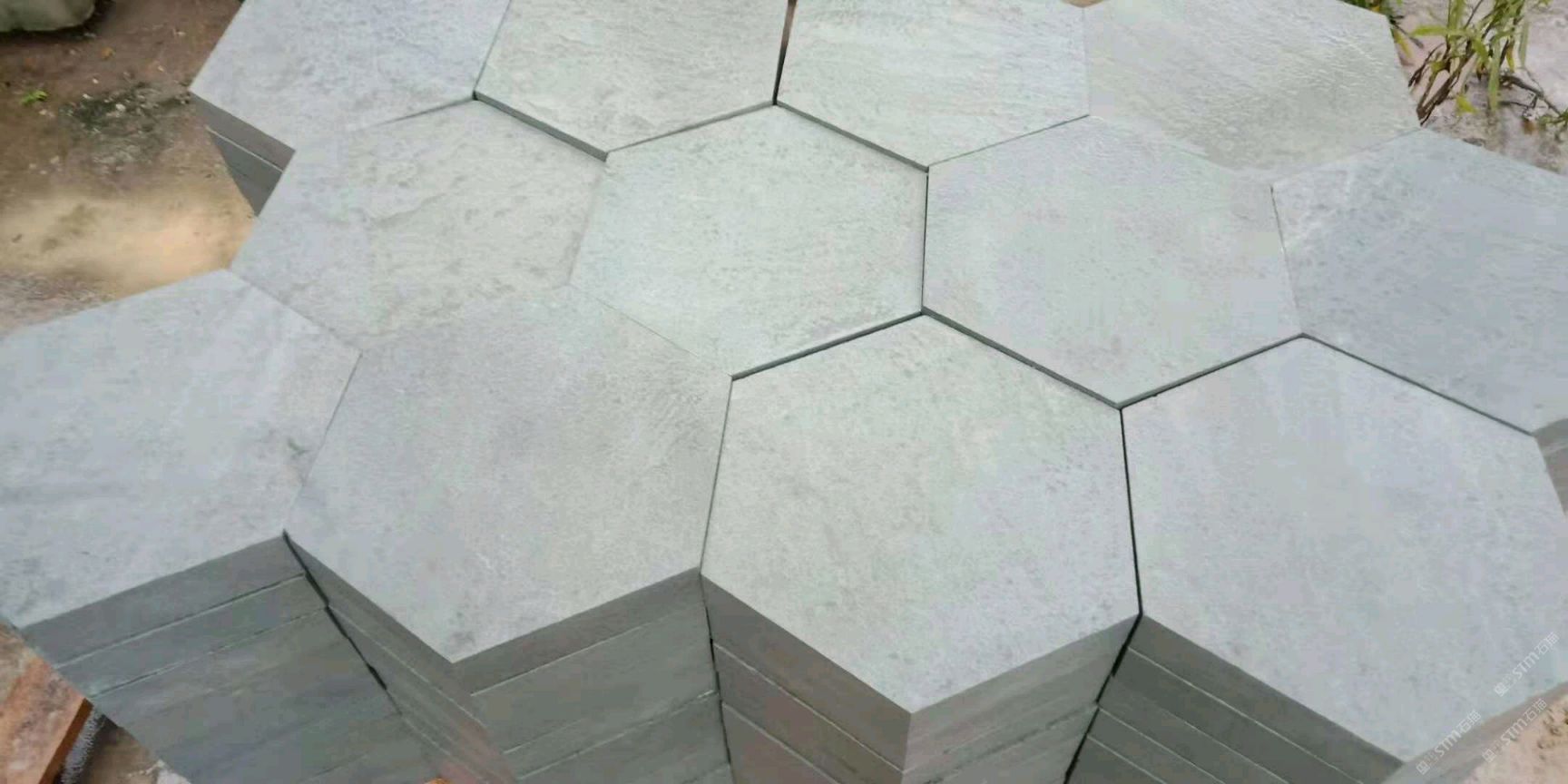 四川青砂巖(青石、青沙巖、綠砂巖、綠沙巖、青砂巖)火燒面 六邊形 地鋪 外墻
