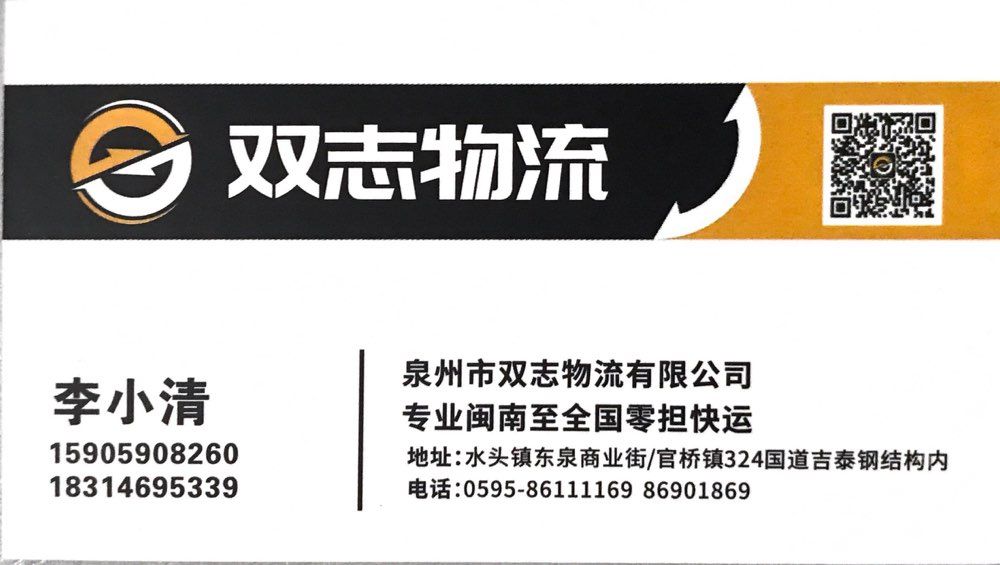 發(fā)布信息: 【雙志物流】成立于2004年,專注國(guó)內(nèi)公路零擔(dān)汽車運(yùn)輸,專業(yè)石材,瓷磚,設(shè)備,配件等重貨零擔(dān)快運(yùn),點(diǎn)點(diǎn)直達(dá),致力于打造專業(yè)高效的物流服務(wù)!天天發(fā)車!?? 1.水頭總公司:南安市水頭鎮(zhèn)樸山村洋美茂250-3號(hào) 2.官橋分公司:南安市官橋鎮(zhèn)周厝村田墘120-5號(hào) 3.晉江分公司:晉江市磁灶鎮(zhèn)福新路西168號(hào) 手機(jī)微信同號(hào)?? 整車熱線:15905908260 零擔(dān)熱線:18314695339
