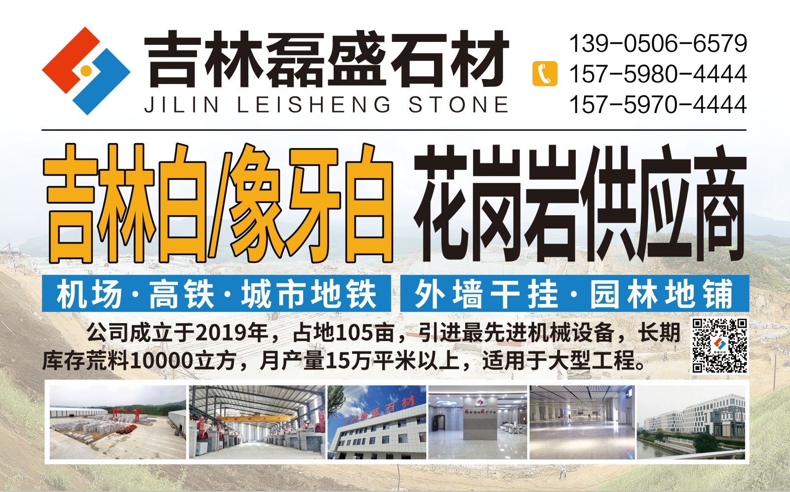 吉林磊盛石材 聯(lián)系人:蔡總    139****6579 查看 157****4444 查看 主營(yíng)范圍: 荒料、花崗巖加工、礦山、石材雕刻、石材外貿(mào)、 企業(yè)地址:吉林吉林蛟河市天崗石材產(chǎn)業(yè)園區(qū)