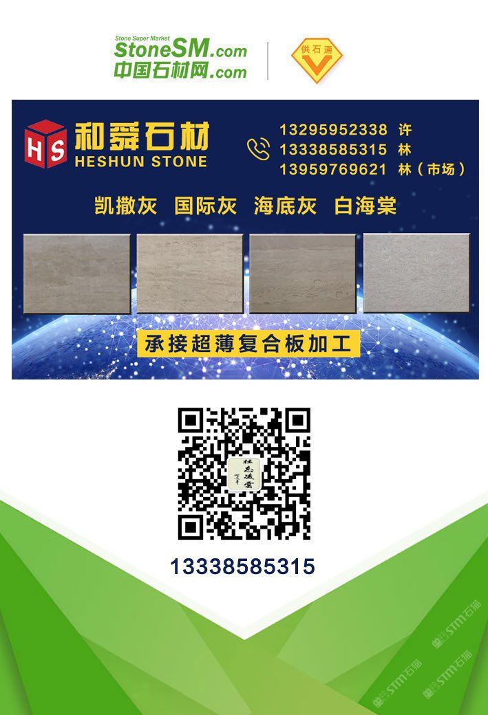 發(fā)布信息: 凱撒灰、白海棠、海底灰、維也納灰、白貝利/美國灰 灰色系列大板日日上新,貨源充足,新板精品不斷到場…… 地址:水頭鎮(zhèn)濱海工業(yè)區(qū)輝盛大板市場 歡迎您的光臨指導(dǎo) 服務(wù)熱線: 13295952338許 13338585315林 13959769621林