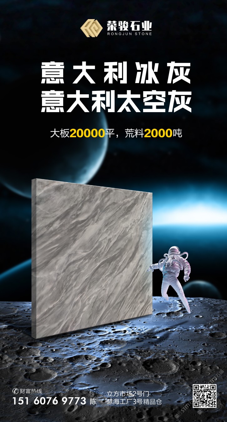 發(fā)布信息: 榮駿石業(yè) 【意大利冰灰】??【太空灰】 長期2??0??0??0??0??平大板 1500噸荒料 (1.5cm 1.8cm,長期保持現(xiàn)貨) 保證工程量,滿足各種風(fēng)格[機(jī)智] ?? :17689686880 ??:立方市場2號(hào)通道①區(qū) ?? :15368121892 ??:慧海石材③號(hào)門