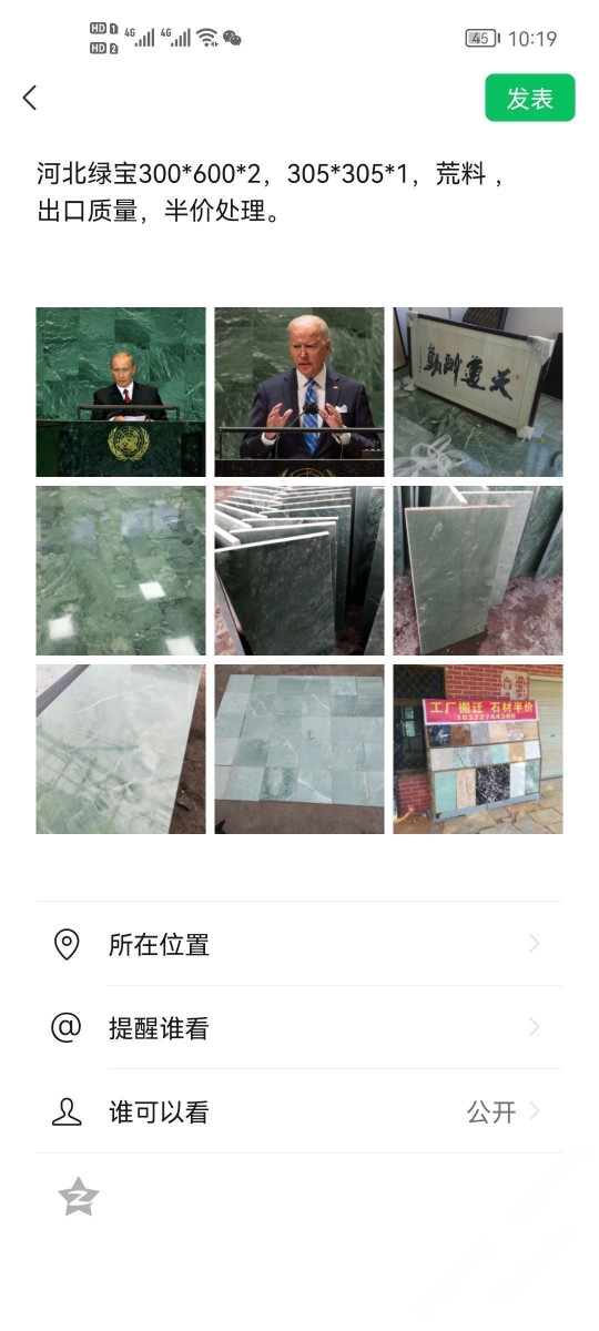 發(fā)布信息: 工廠搬遷 板材半價 處理大理石、花崗巖庫存出口質(zhì)量,木紋黃、603花崗巖芝麻白線條、 603花崗巖毛板、黑白根、荷花綠、河北綠寶、彩灰等大理石規(guī)格板。 18372744386蔡@所有人