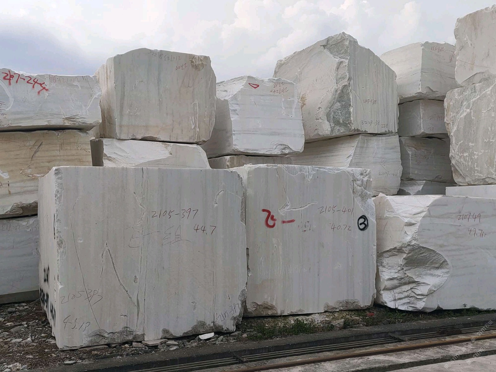 漢白玉荒料堆場大量現(xiàn)貨