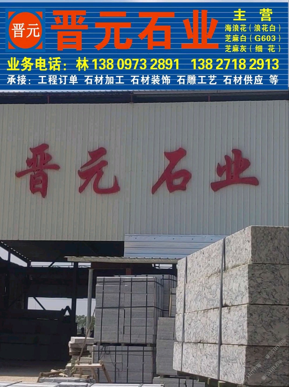 發(fā)布信息: 晉元石業(yè)板材廠產(chǎn)品包括各類石材板材、石材雕塑、石材工藝品等,廣泛應用于建筑裝飾、園林景觀、室內(nèi)裝修等領(lǐng)域。13809732891林(微信同號)/13725220562榮