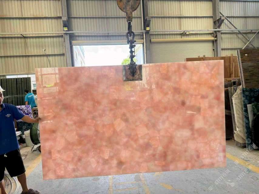 批發(fā)定制粉水晶大板,透光石材,半寶石板材
