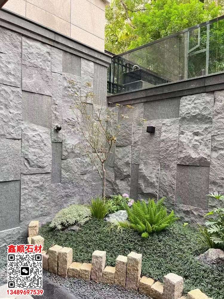 商圈 > 花崗巖 > 芝麻黑石皮背景墻自然面背景墻景觀墻石皮墻文化石墻磚