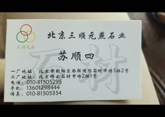 天津三順元燕石業(yè) 聯(lián)系人:蘇先生    136****8444 查看 手機(jī)號(hào)碼:無 主營范圍: 大板批發(fā)、荒料、異型加工、礦山、 企業(yè)地址:天津武清區(qū)武清區(qū)汊沽港天下石倉花崗巖市場4排25號(hào)