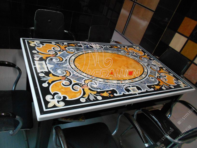 商圈 > 石桌椅 > 水刀拼花桌面巴西藍(lán)寶石玉石材桌面
