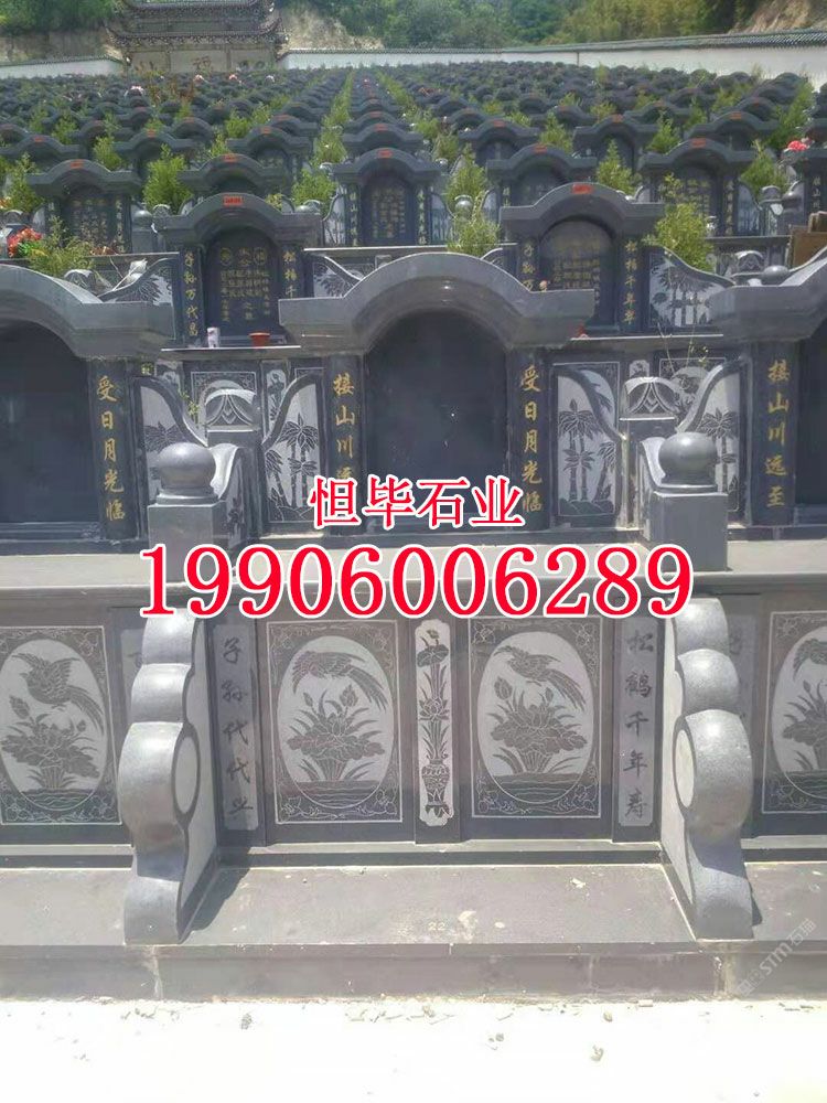 g654石材豪華石雕火葬碑家族墓碑芝麻黑公墓套墓