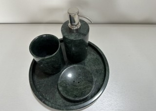 大花綠石材衛(wèi)浴四件套 石材香皂盒淋浴擺件托盤